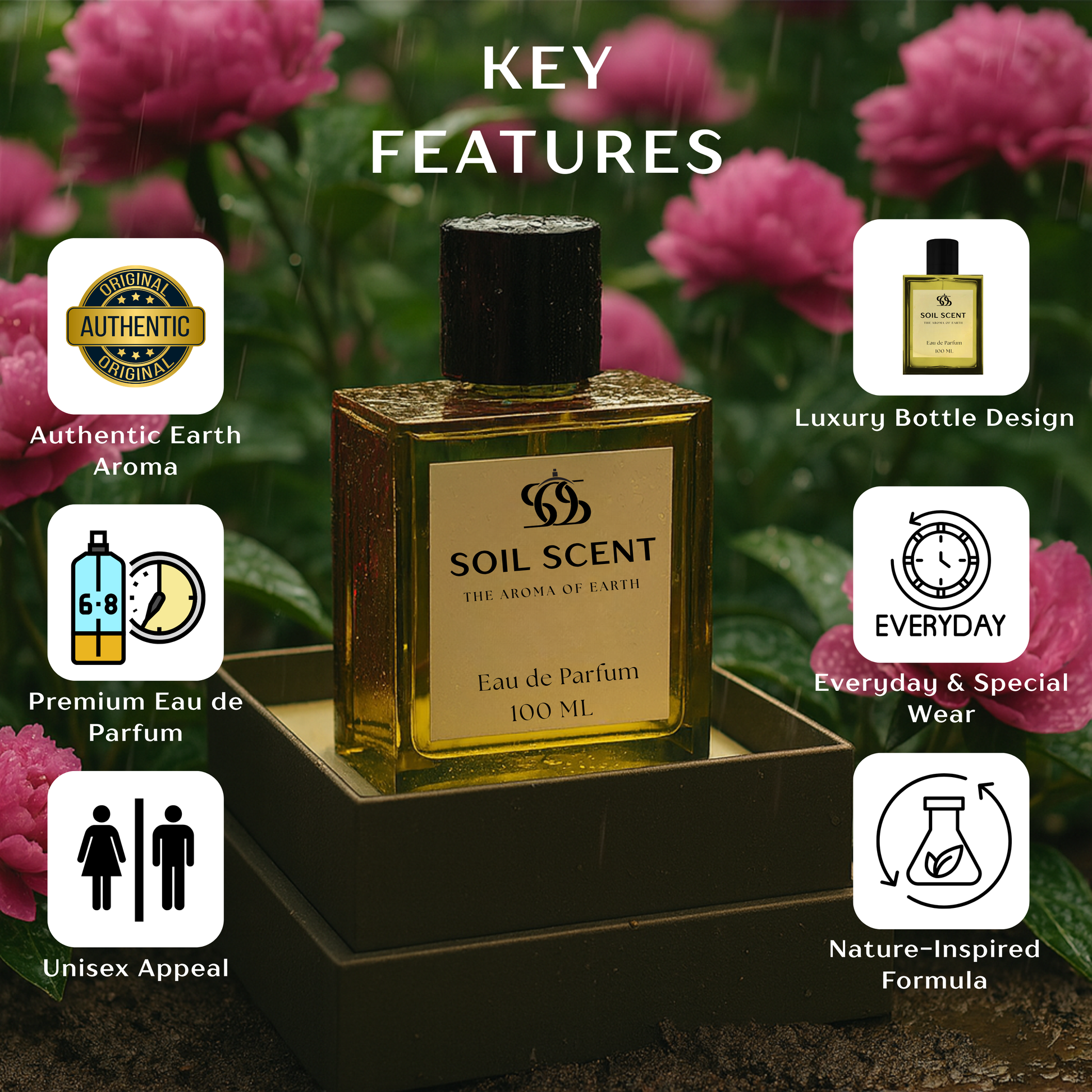 Experience the magic of nature captured in a bottle. SOIL SCENT brings you the pure essence of the earth after rain — fresh, grounding, and timeless. Crafted for those who appreciate the beauty of nature, this perfume delivers a luxurious, earthy aroma that stays with you all day.